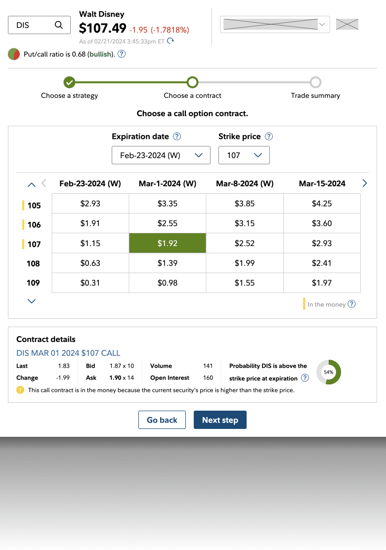 I designed this user interaction for creating a calendar spread, a unique option strategy requiring selection of two expiration dates.